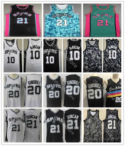 sewn men derrick 4 white jerseys dejounte 5 murray demar 10 derozan manu 20 ginobili tim 21 duncan basketball college shirts, Black;red