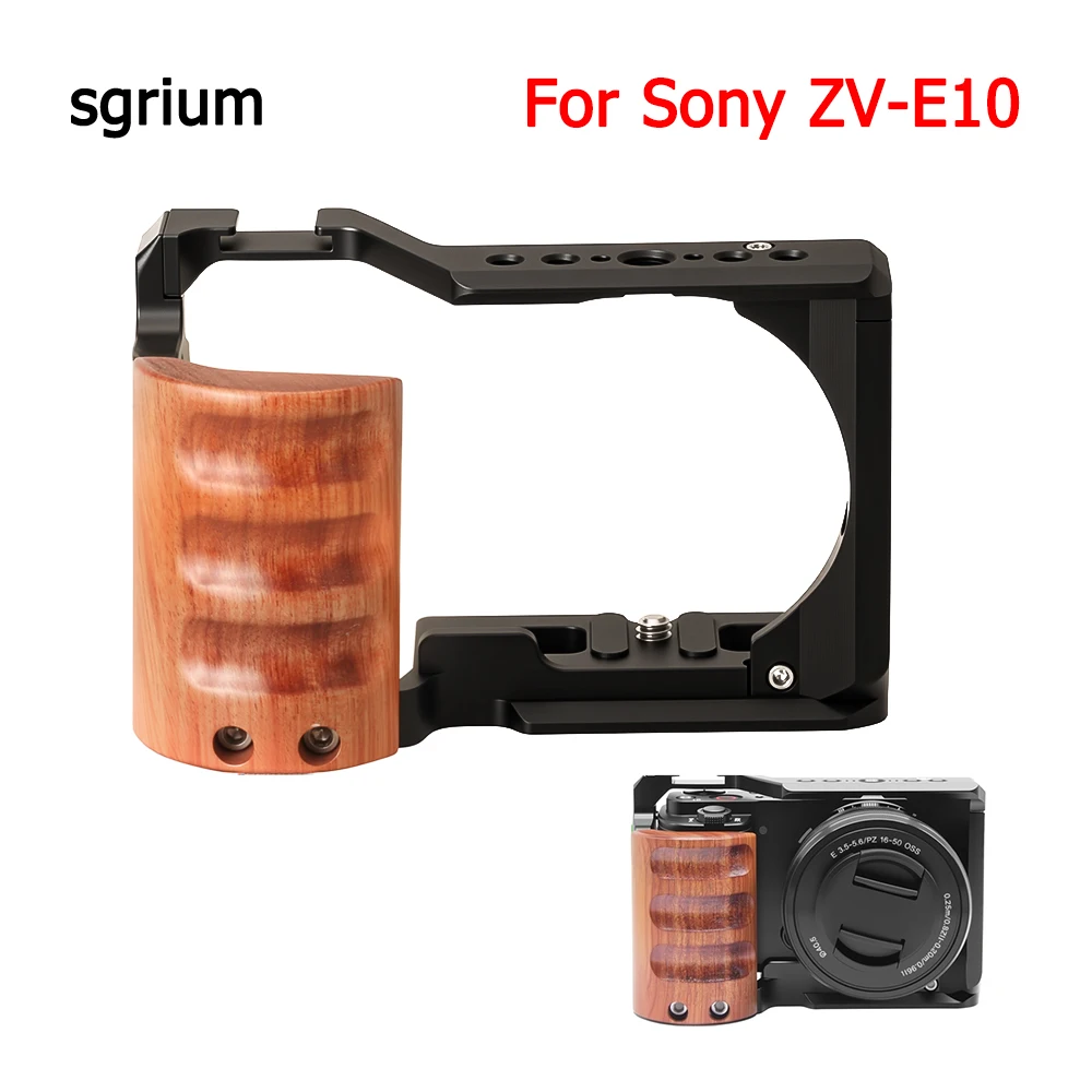 sgrium For Sony ZV-E10 Cage camera With Wooden Handle Rabbit cage support bracket led microphone Extension Video Cage