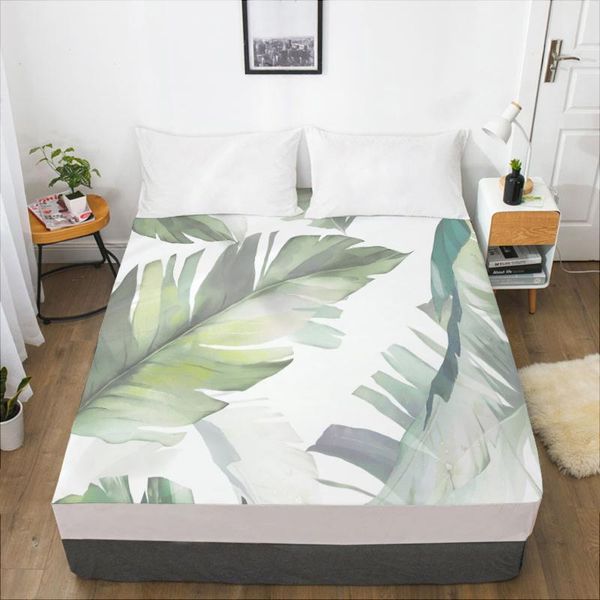 sheets & sets elastic fitted sheet bed with an band 150/180/200/160*200 mattress cover 1pc nordic leaf grey