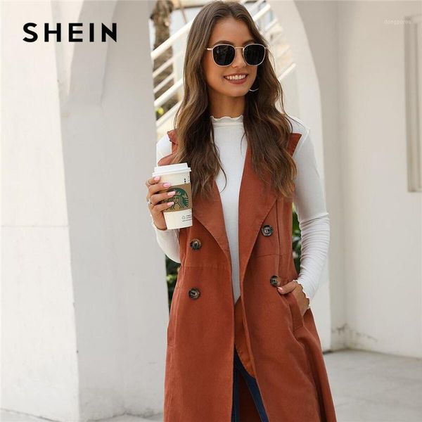 shein solid double-breasted waterfall collar trench vest women outwear spring autumn sleeveless high street midi casual coats1, Black;white