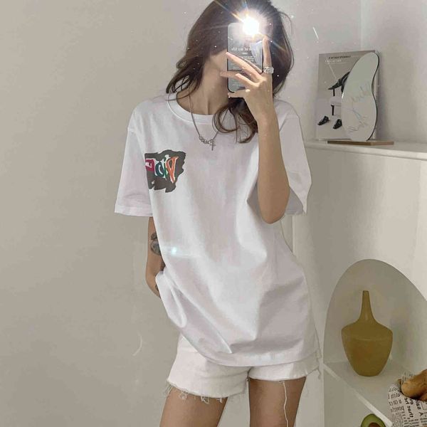 shirt d family 2021 spring and summer couple's graffiti letter printed round neck short sleeve for men women, White