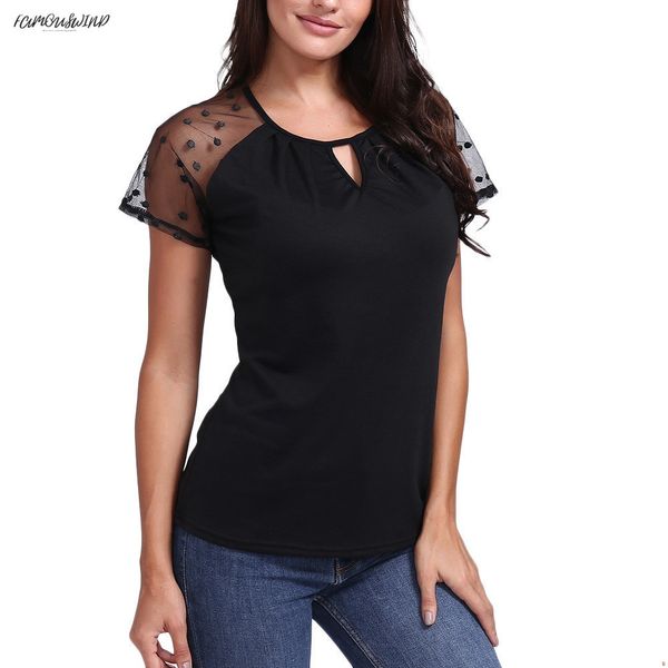 shirt womens and blouses regular casual o-neck lace hollow out short sleeve solid summer fashion blusa feminina, White