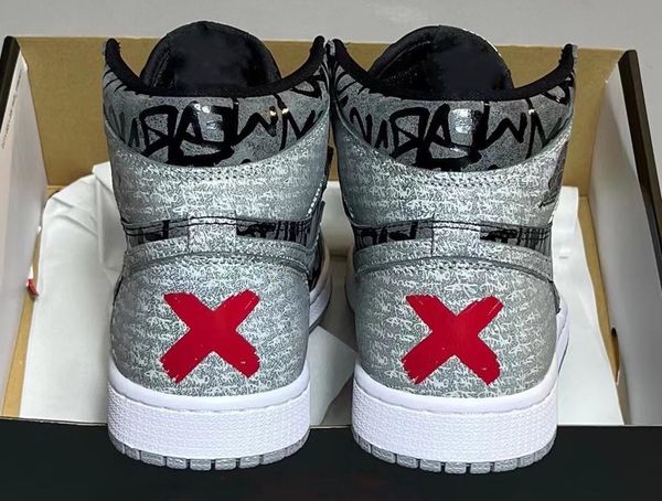 shoes authentic 1 high og rebellionaire black white-particle grey men women sports outdoor sneakers original, White;red