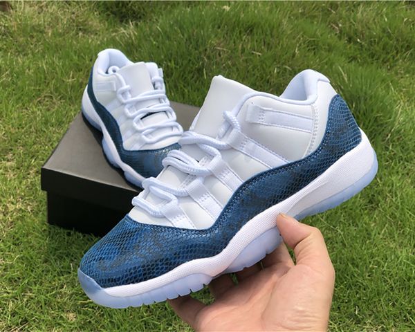 shoes authentic jumpman 11 low basketball navy snakeskin white black-navy real fiber 11s luxury designer sports fashion