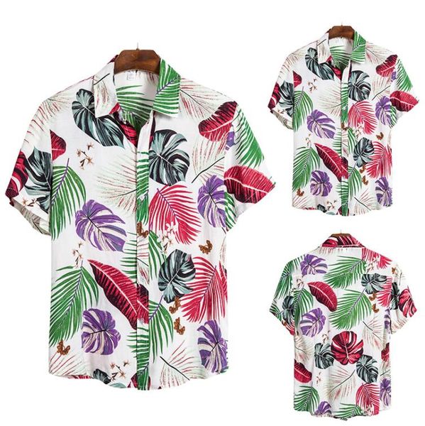 shoppingmens flower printed casual breathable short sleeve shirts size m~3xl, White;black