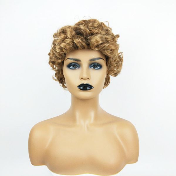 short curly brown synthetic wig with bangs simulation human hair wigs hairpieces for black & white women k07