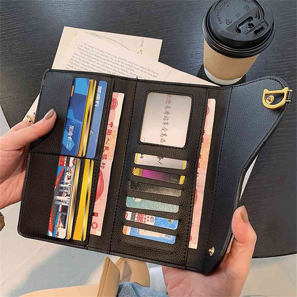 short wallet women's new printed thin folding multi card long handbag, Red;black