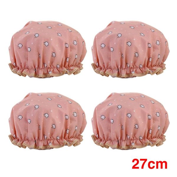 shower caps 4pcs adults home peva cartoon bathroom cute cat printed elastic waterproof double layer women cap reusable salon bonnet