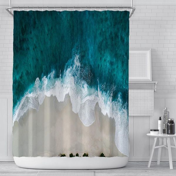 shower curtains dusty green seaside scenery curtain set with 12 hooks bathroom decoration