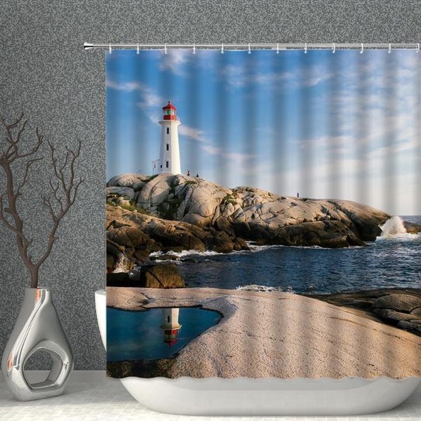 shower curtains lighthouse ocean landscape green leaf seagull palm tree bathroom waterproof polyester decorative screen washable