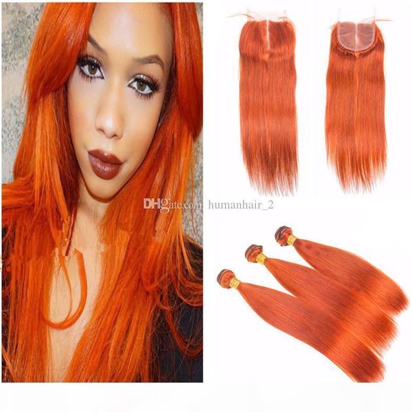 silk straight orange lace closure with bundles brazilian virgin human hair weaves with 4x4closure orange straight closure with bundles, Black;brown