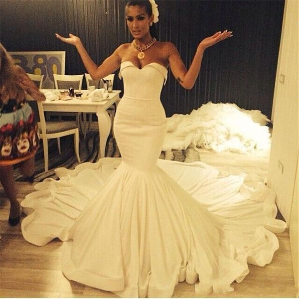 simple design white mermaid wedding dresses 2019 new summer sweetheart court train beach bridal gowns custom made satin vestidos 1360