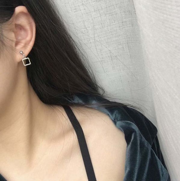 simple geometric square smooth earrings stud, Golden;silver