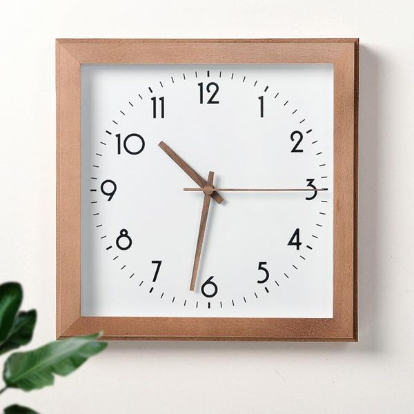 simple japanese square wall clock living room lisheng retro nordic modern solid wood silent clocks