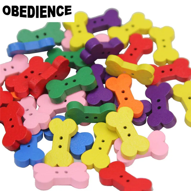 OBEDIENCE 100pcs 10*18mm Mixed Bone Shape Wooden Buttons,Handmade Sewing Scrapbooking Craft DIY Decoration Cloth Toy Botone