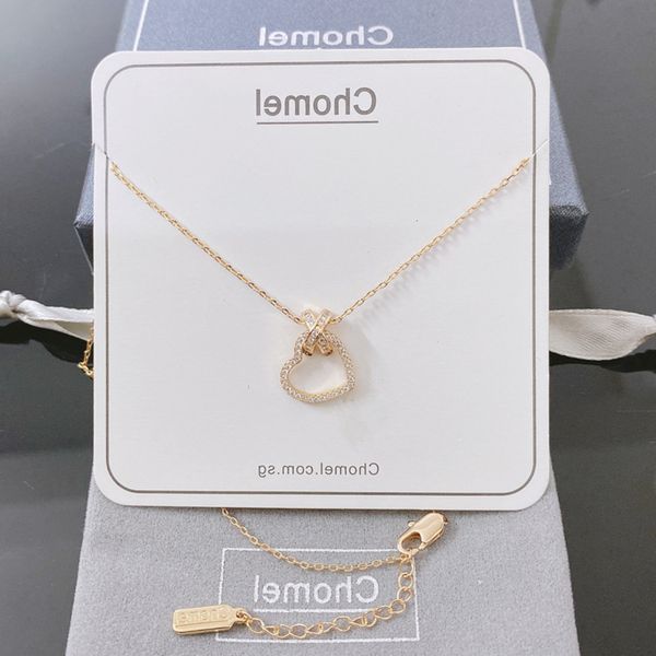 singapore chomel silver necklace heart diamond series simple clavicle chain jewelry, Black