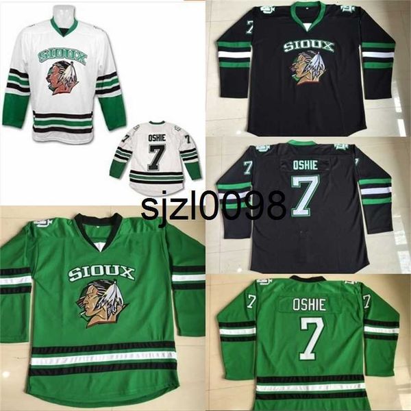 sj98 #7 tj oshie north dakota hockey jersey men's 100% stitched embroidery fighting sioux dakota college hockey jerseys black white gre