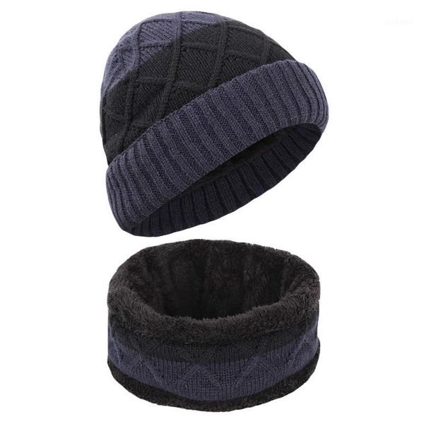 ski cycling sport cap neck warmer plush velvet lined hat & scarf set slouchy winter hat scarf set knitting1, Black