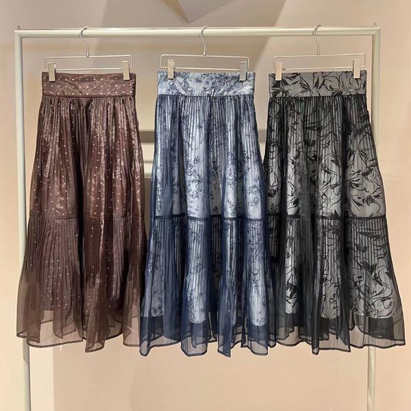 skirts kuzuwata japan femme jupes early autumn sweet chiffon mesh mujer faldas high waist dots print double layer pleated skirt 230428, Black