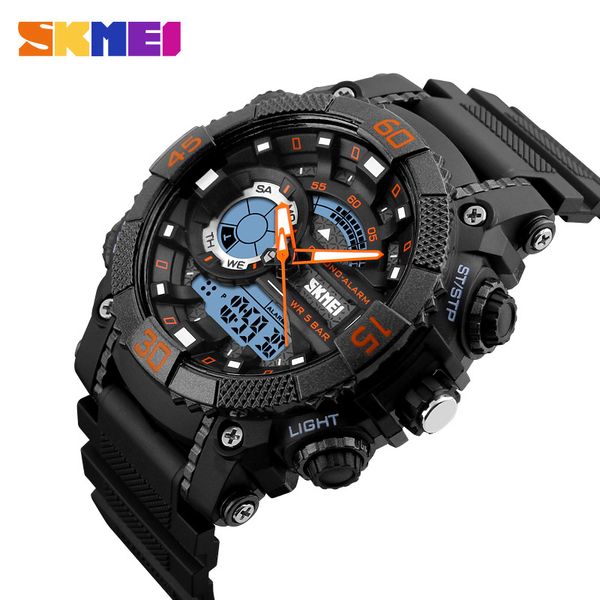 skmei 5bar waterproof male digital wristwatches men quartz watch 2 time chronograph sport watches clock relogio masculino 1228 x0524, Slivery;brown