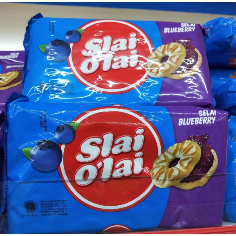 biscuit slai o'lay 128g yang lezat cocok banget buat teman santai terdiri 3 varian nenas,stobery dan anggur