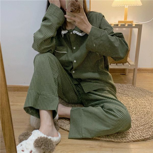 sleepwear green chic christmas sweet korean loose homewear all match lace sleepwear women girls pajamas sets, Black;red