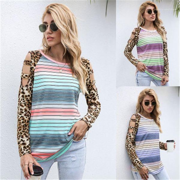 sleeve tee designer female loose casual strapless tshirt women leopard gradient t-shirts fashion trend striped hollow round neck long, White