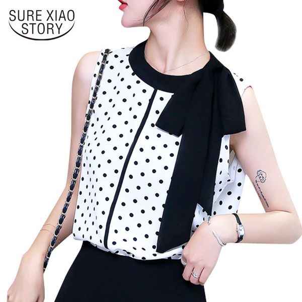 sleeveless chiffon shirt lady summer casual bow loose show thin women plus size o-neck shirts 4686 50 210510, White