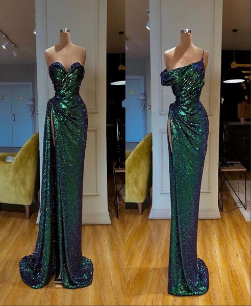 sleeveless silver mermaid evening dresses 2019 high split prom dress sequined formal evening gowns robe de soiree abendk3765923, Black;red