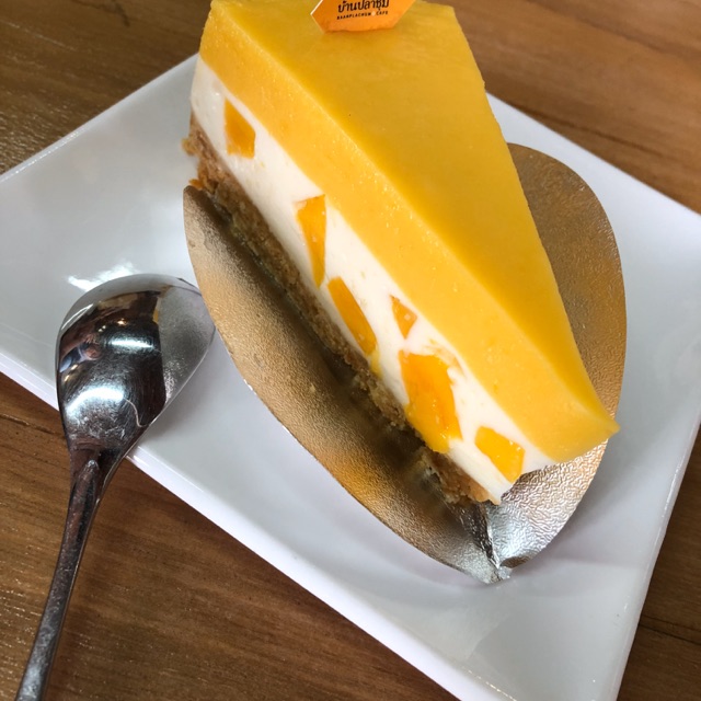 mango cake with vanilla cream filling.