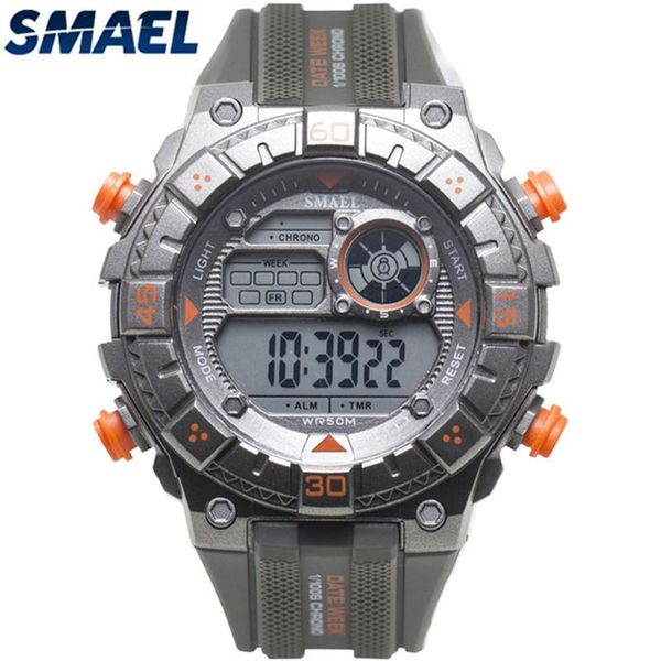 smael men sports watches led digital watch fashion outdoor waterproof rubber watch relogio masculino, Slivery;brown