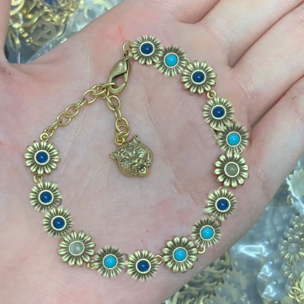 small daisy retro turquoise flower bracelet brass luxury women chain bangles copper material girls bracelets designer jewelry gifts gifts cg, Black