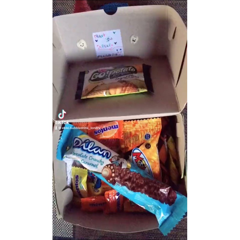 snack box murah banget bisa untuk kado ultah,ortu,pacar,& sahabat pokoknya di jamin pasti mereka seneng banget # snack box