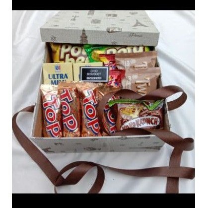 Rayakan hari bahagia sahabat kamu dengan memberikan bingkisan snack box berbagai macam varian dan rasa