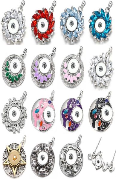 snap pendant necklace jewelry round crystal 18mm snaps button fit diy noosa chunk with stainless steel chain9886490, Silver