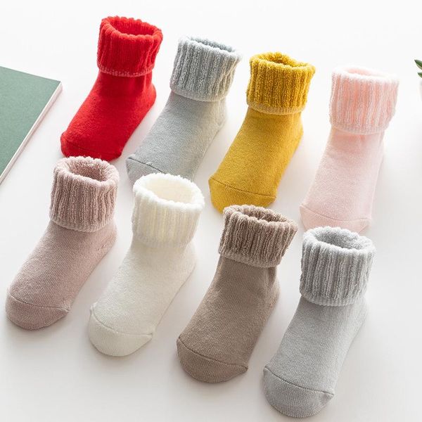 socks 0-2 years baby girls boys born infant winter warm boots toddler kids solid soft cotton terry booties, Pink;yellow