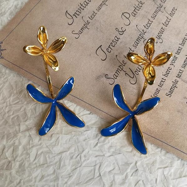 song same flower earrings drop oil copper plated super fairy fashion temperament fairy wind earrings, Golden