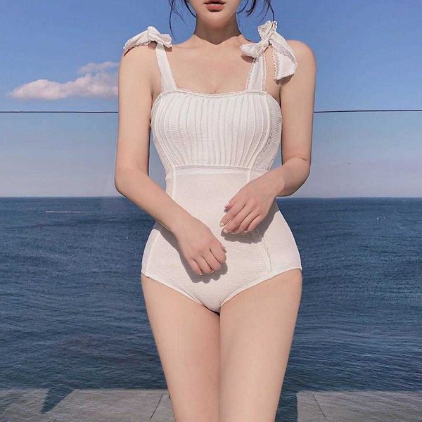 source japanese one piece swimsuit female ins style korean bandeau bow, White;black