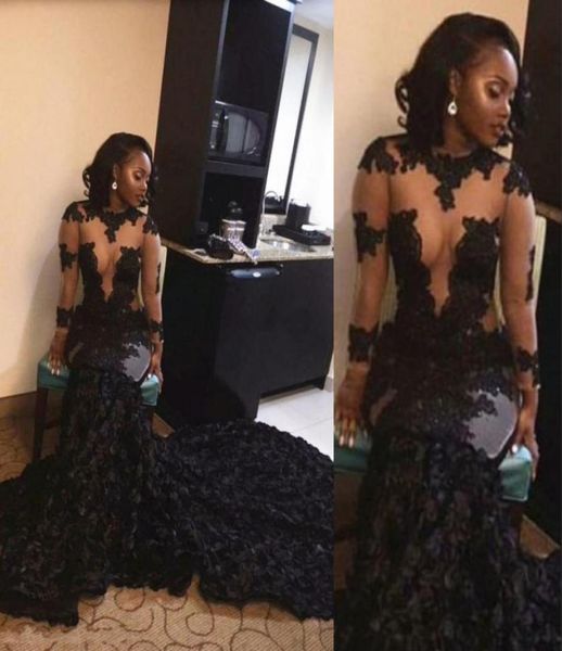 south afria style black girl prom dresses 2016 see through lace applique mermaid evening gowns ruched sweep train formal part4314875