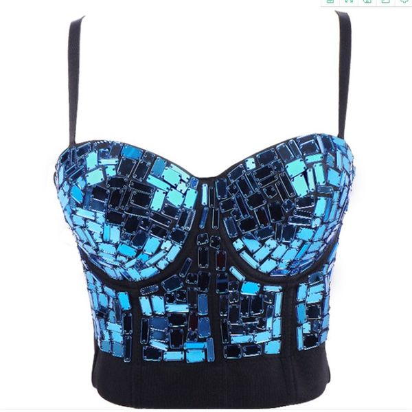 spaghetti strap red blue camis diamond beading splice backless crop nightclub high waist bodycon female camisoles, Black;red