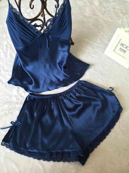 spaghetti strap women pajamas female blackless deep v pajama set, Black;red