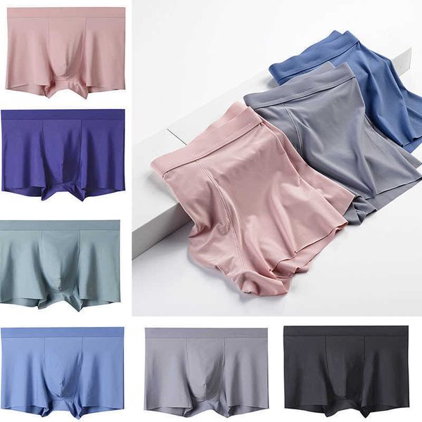 spandex seamless underpants men's ice silk underwear mid-waist breathable boxer briefs pants panties boxersdfm3, Black;white