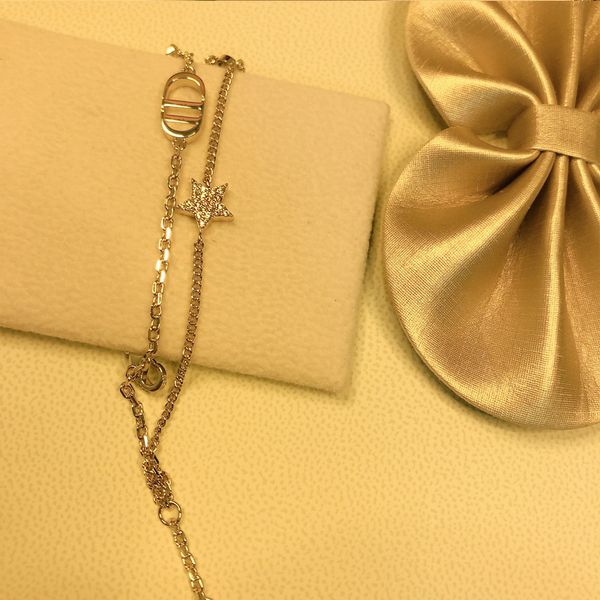 special offer 2021 luxury designer jewelry high end five star double layer bracelet brass french simple bracelet, White