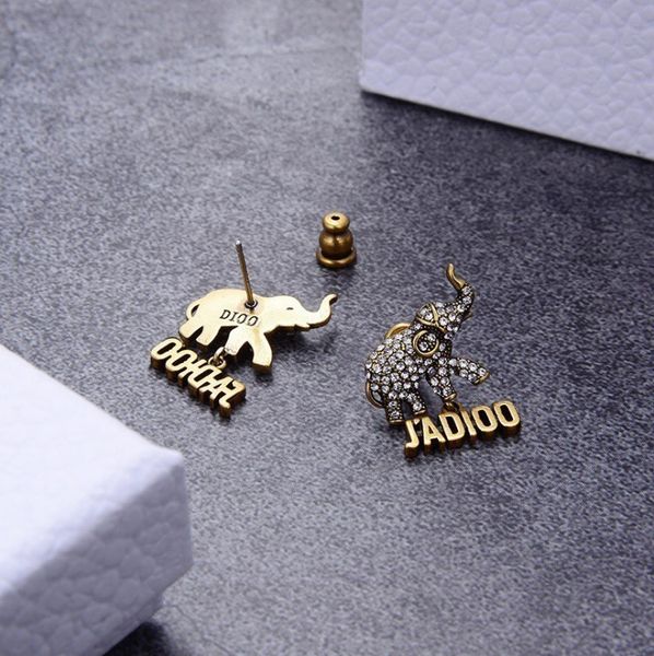 special offer 70% off di letter earrings 2021 fashion new earrings small elephant full drill seiko kx46 7bdb oghp, Golden;silver