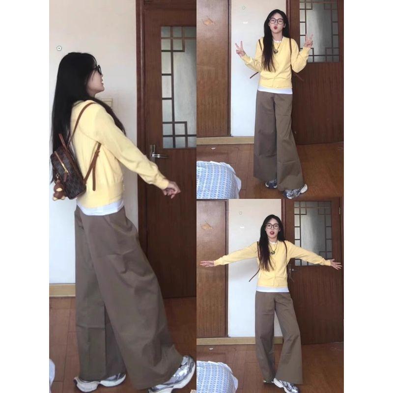 Женский летний 2025 комплект быстросохнущий топ с коротким рукавом на молнии до половины и свободные брюки для йоги L (Chest & Waist Reference)