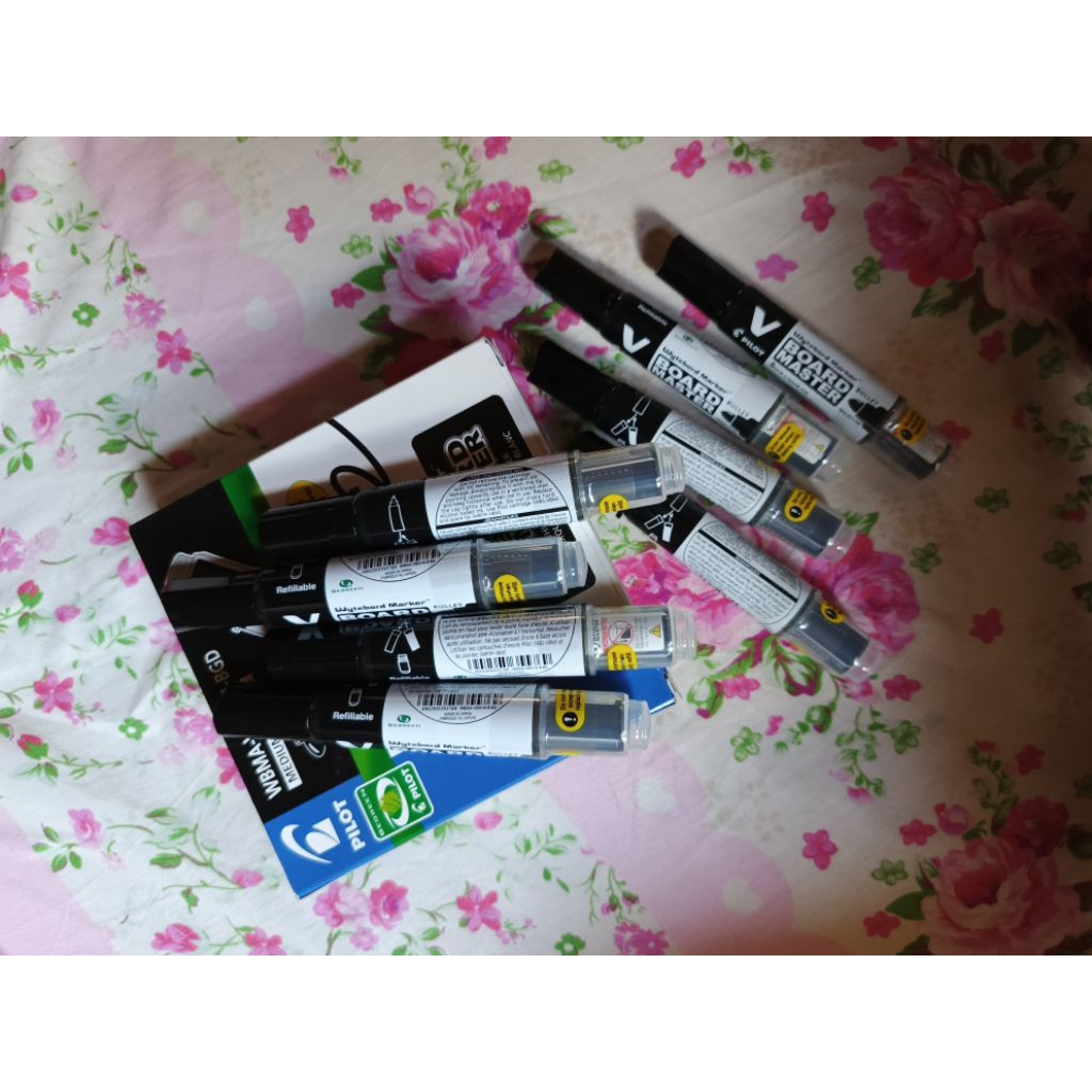 Spidol whiteboard Pilot (V Board Master) adalah spidol yang dirancang khusus untuk digunakan pada papan tulis putih atau whiteboard. Spidol ini memiliki tinta yang mudah dihapus dan tersedia dalam berbagai warna, seperti hitam, biru, merah, hijau, orange, dan ungu. Spidol ini juga menggunakan bahan daur ulang (BE GREEN), sehingga ramah lingkungan.