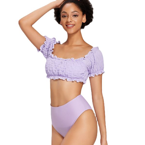 split swimsuit bubble knit beach cross-border bras sets, Red;black