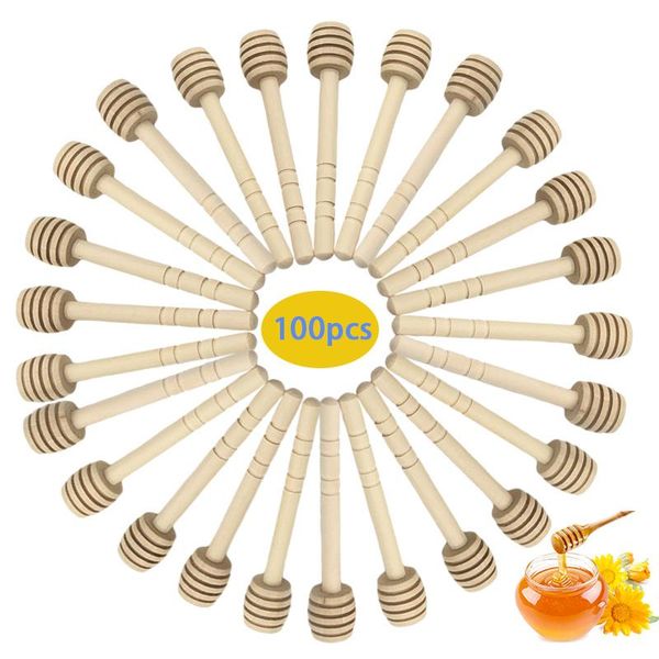 spoons 100pcs 10cm wood stir bar mixing handle dipper honey long stick stirring jar spoon for coffee milk tea kitchen accessories