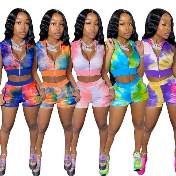 sport two piece set tie women tracksuits dye zipper up blouses shorts jogger sweatpants suit tracksuit matching outfits, Gray