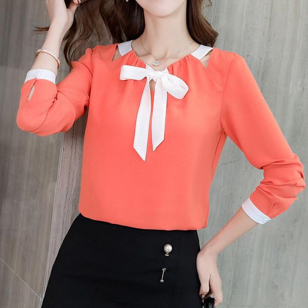 spring 2021 korean women shirt slim long sleeve casual chiffon blouse office fashion lace up streetwear autumn ladies women's blouses, White